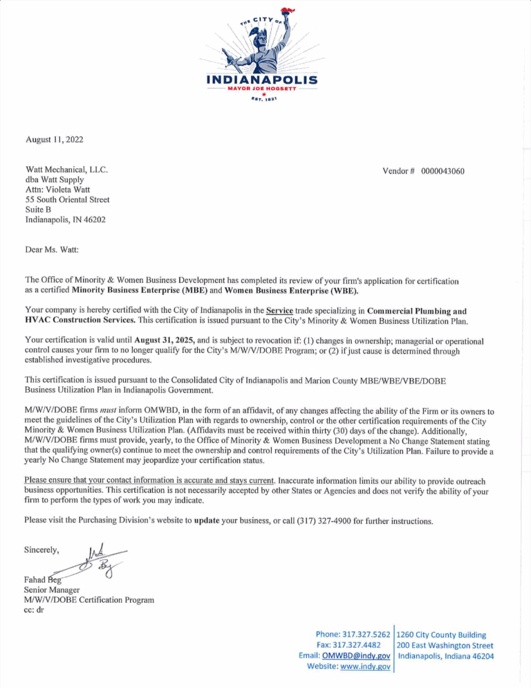 Watt Mechanical is a woman- and minority-owned commercial mechanical company based in Indianapolis. For over 20 years, we’ve delivered high-quality HVAC and plumbing solutions, managing projects of all sizes with precision, efficiency, and a team-first approach.